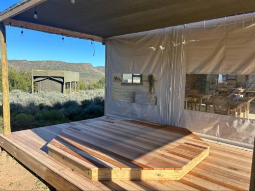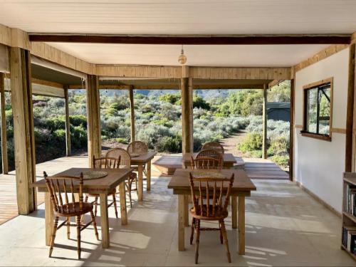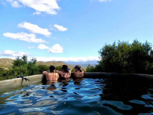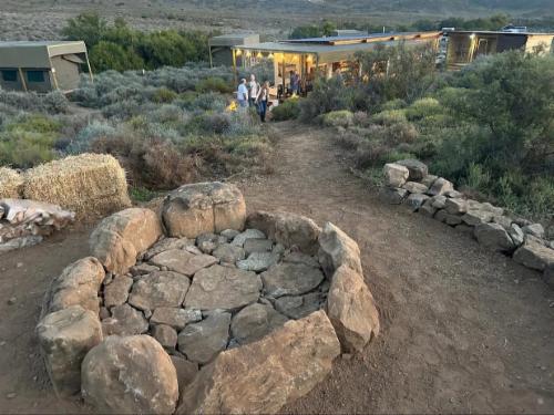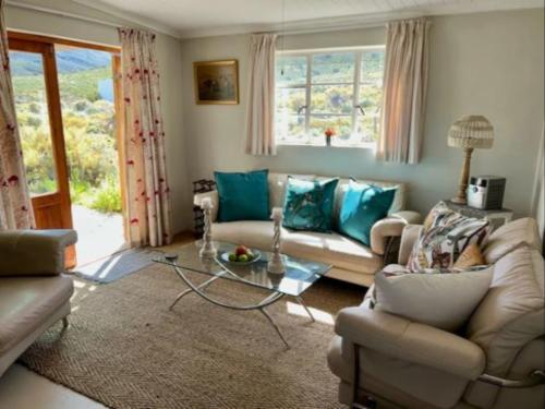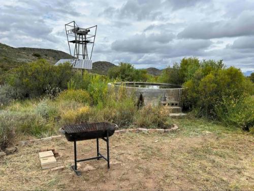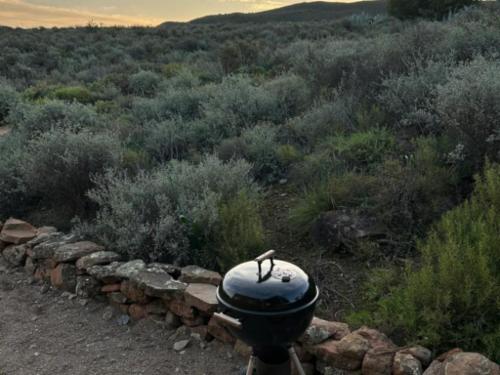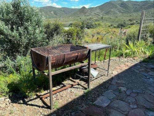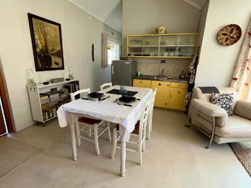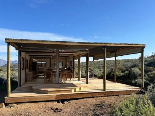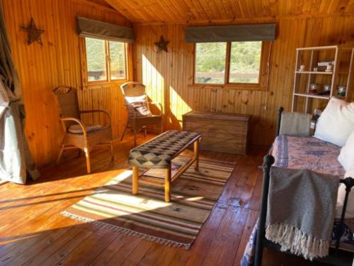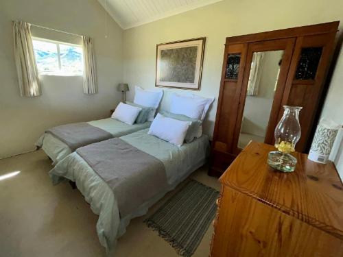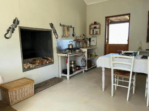 One of 2 renovated old farm cottages, this off-grid cottage has 1 bedroom with a king-size bed/2 single beds, 1 bathroom with a shower, a kitchen, a lounge and dining area with an indoor fireplace, a verandah with seating, and a braai. Wi-Fi is available.