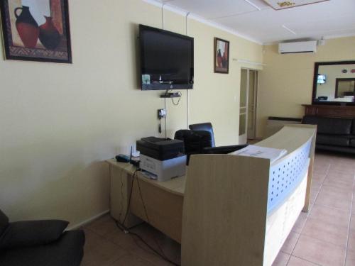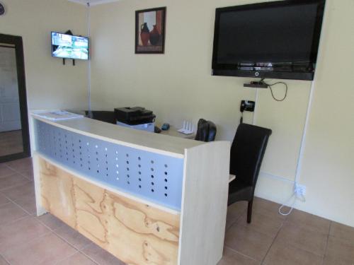 A spacious Family room with a double bed,, 2 single beds, a sleeper couch, mini fridge, desk and a chair, LCD TV with dstv and openview channels, toilet with shower, tea station, air conditioner