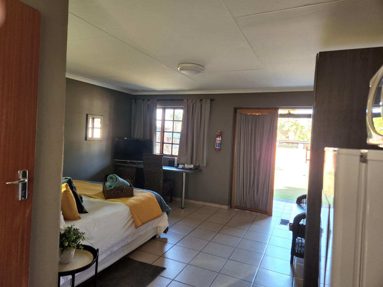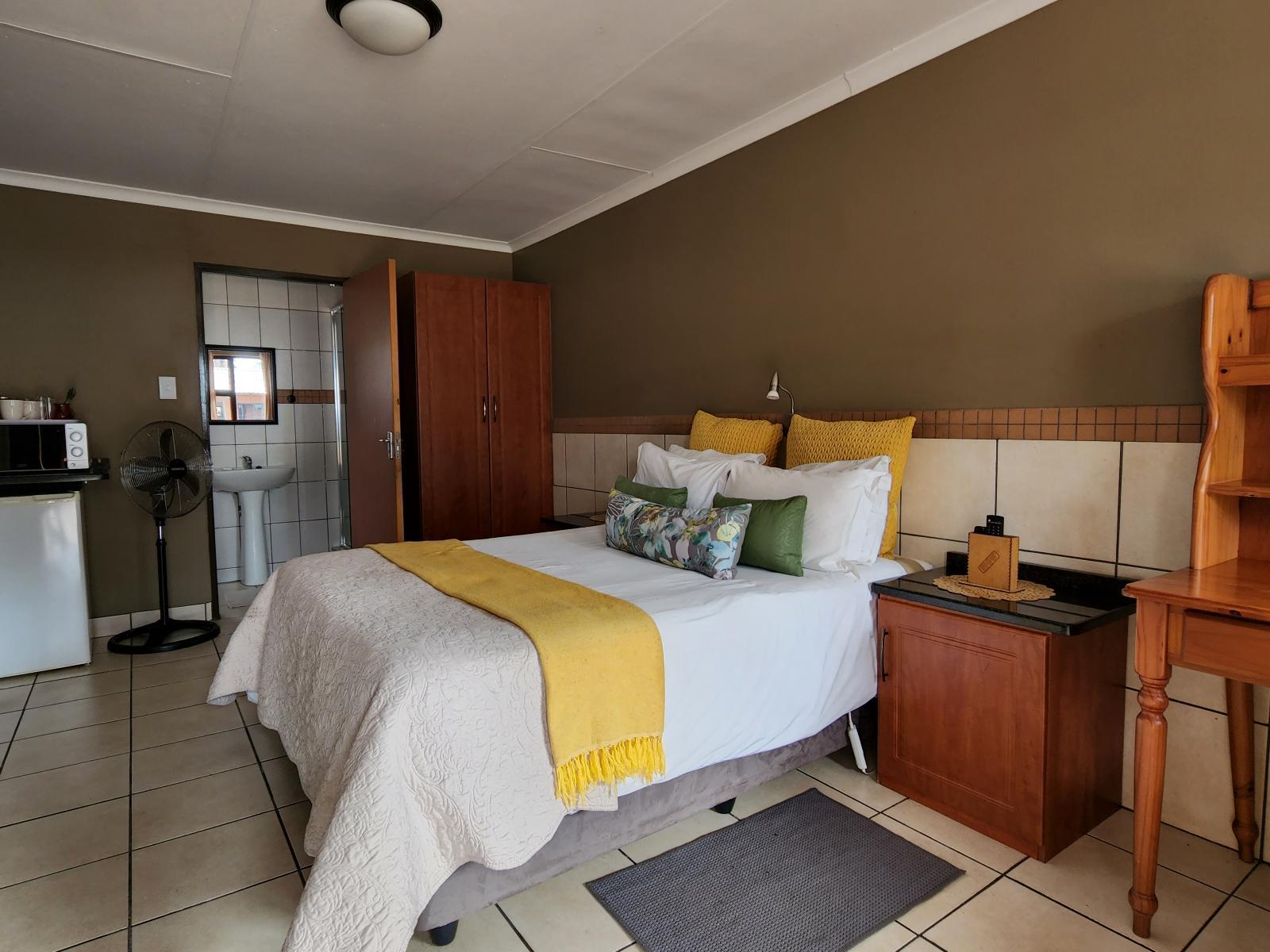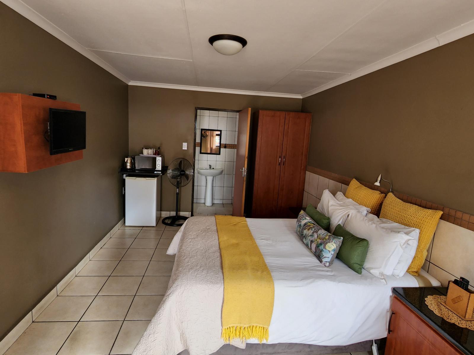 Furnished with a queen-size bed, the room has a private entrance, and a shower en-suite. A tea and coffee station, microwave, fridge, TV with DStv, and Wi-Fi access are available. Meals are available on request.