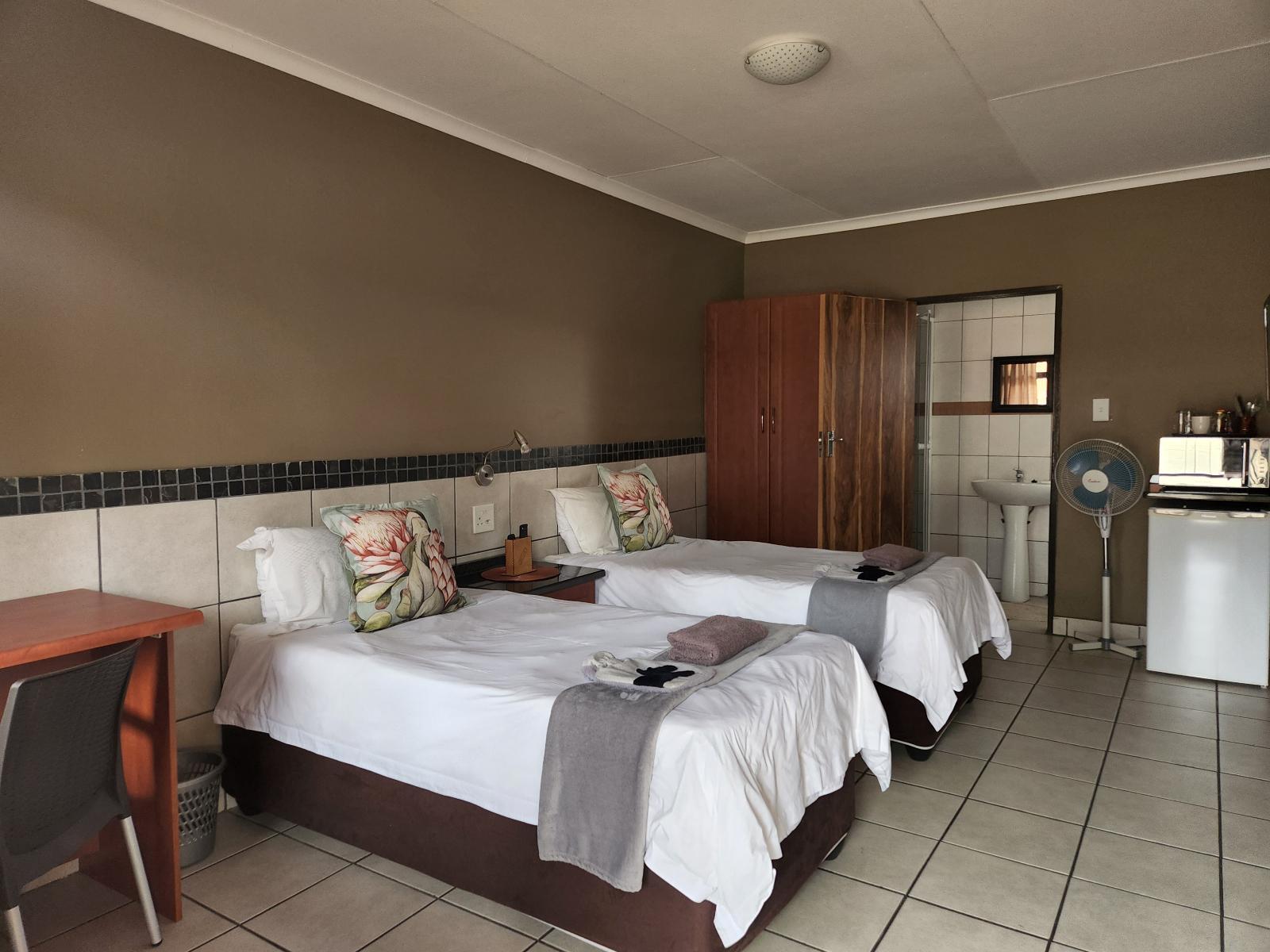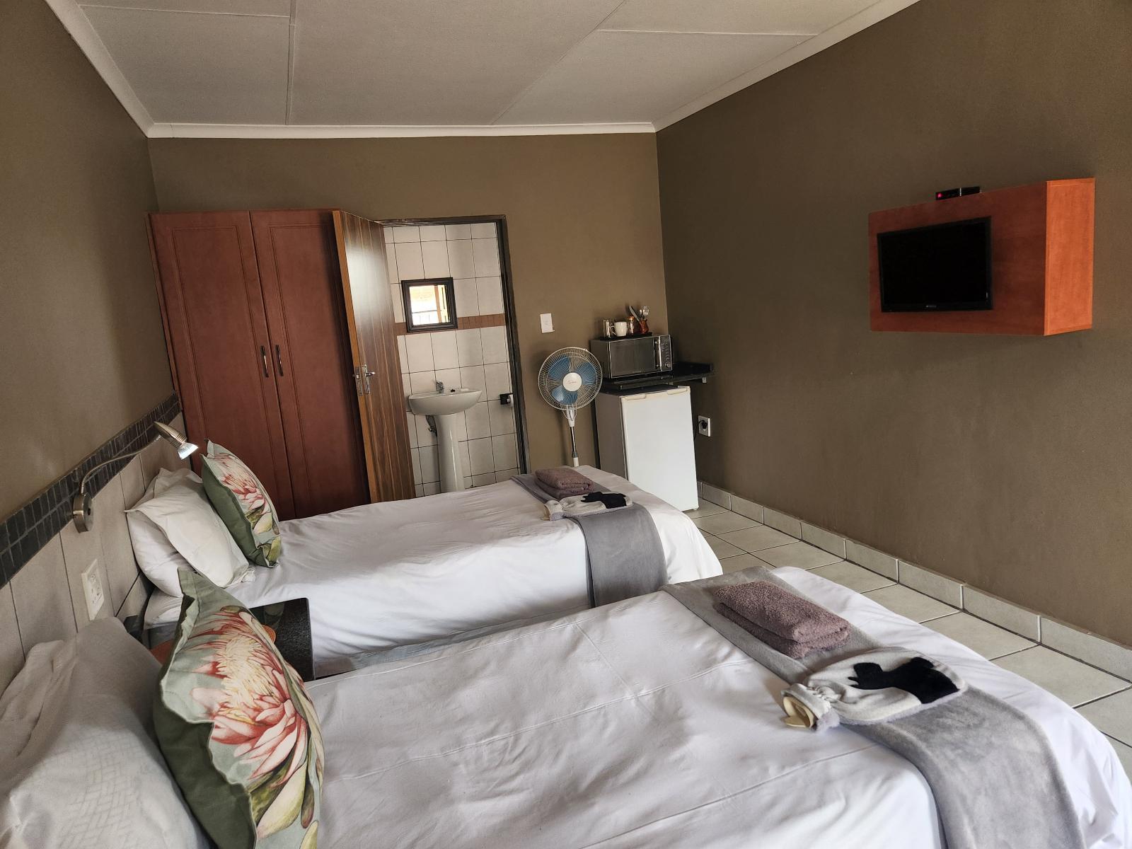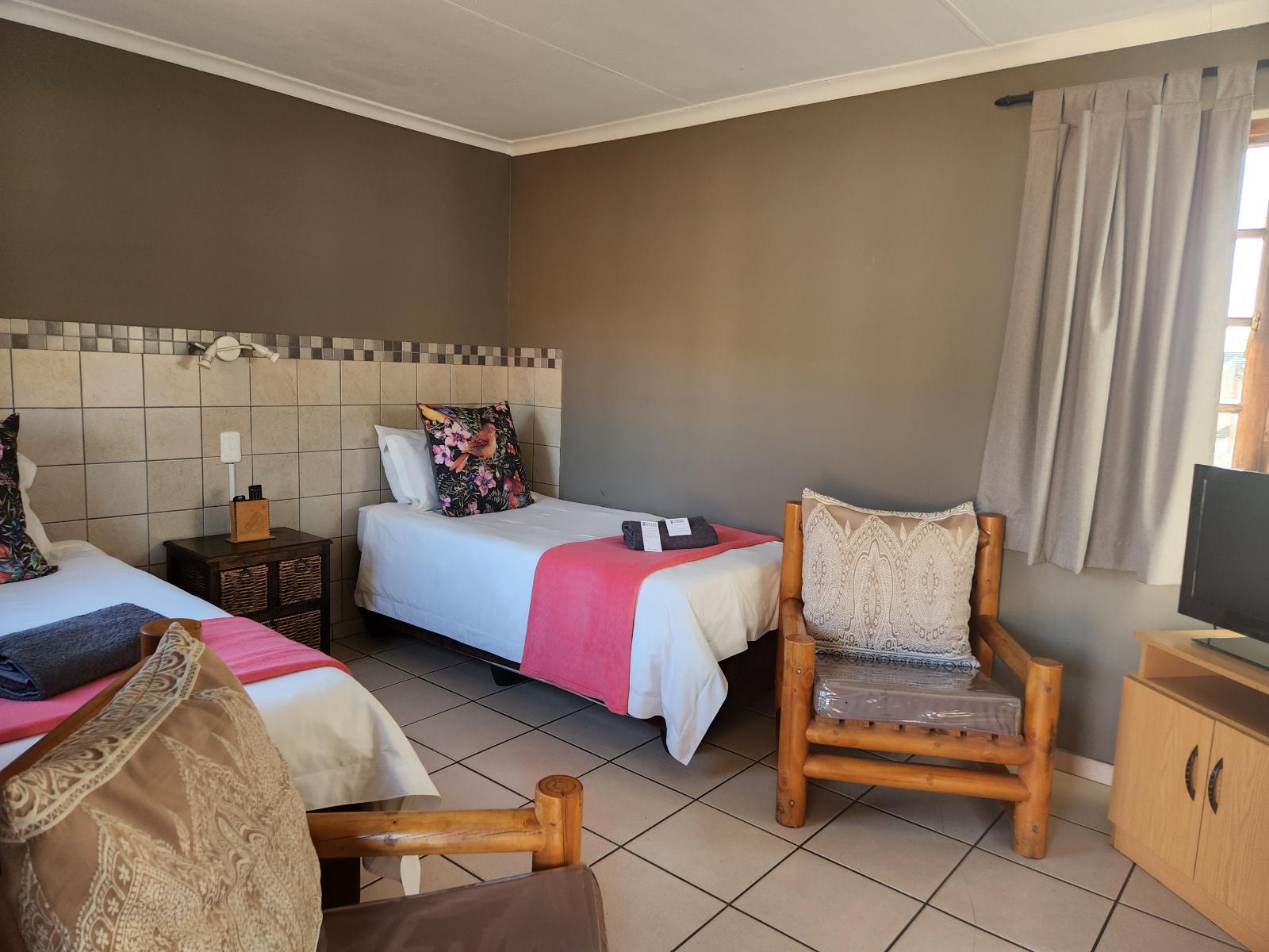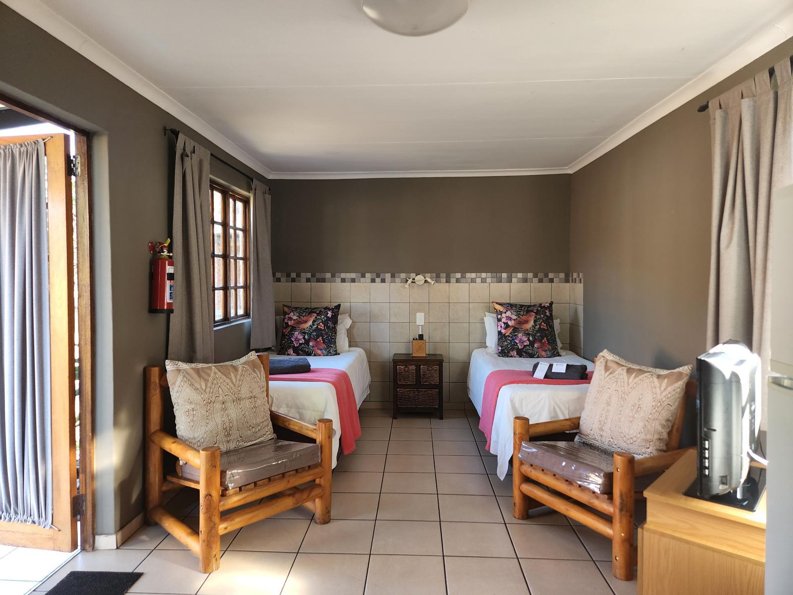 Furnished with a queen-size bed, the room has a private entrance, and a shower en-suite. A tea and coffee station, microwave, fridge, TV with DStv, and Wi-Fi access are available. Meals are available on request.