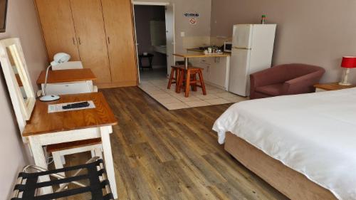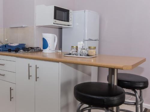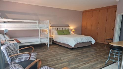 Double bed and a bunk bed in the room. The room is fitted with a kitchenette with microwave, fridge/freezer, 2 plate gas stove, gas kettle, cooking utensils, crockery and cutlery, ensuite bathroom with shower.