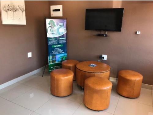 Our luxury rooms have a king size bed and an en-suite with a shower, microwave, terrace, and a private garage with a remote. These rooms have a balcony, air-conditioning, microwave, bar fridge, and TV with DStv.