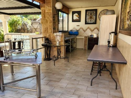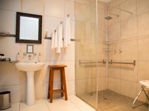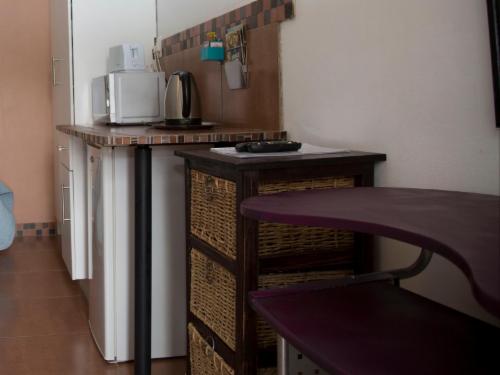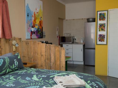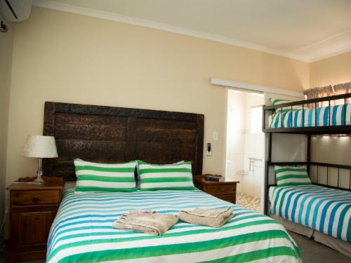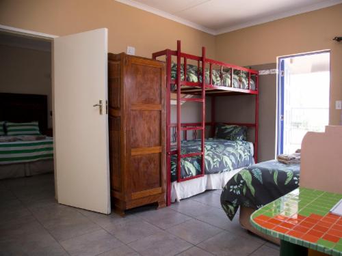 This unit has a separate bedroom with a queen size and ¾ bed, en-suite shower/toilet and basin; The open plan Lounge/kitchen area has a Queen size and ¾ bunk-bed, shower/toilet and basin; with an open plan kitchenette, Microwave, Fridge, Kettle.
