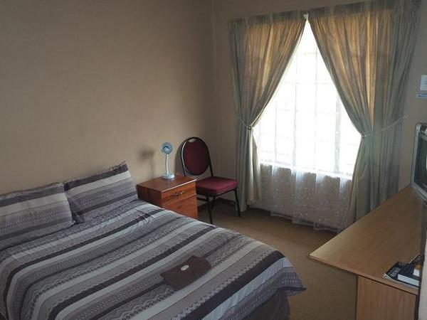 1 Double bed & 1 Single bed with en-suite bathroom (shower only), TV, OVHD, built in cupboards, and Air-conditioning, extras include towels, bath soap and coffee and tea making facilities.