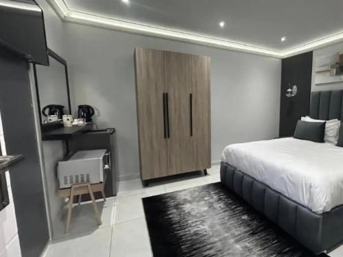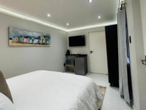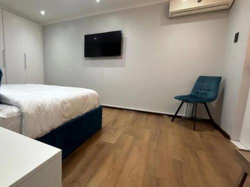 The lovely room is perfect for 2 and offers a queen-size bed with an en-suite walk-in shower. Air-conditioned for comfort, a TV, Wi-Fi, bar fridge and tea and coffee facilities are available. Guests share the use of a communal kitchen, lounge and garden.