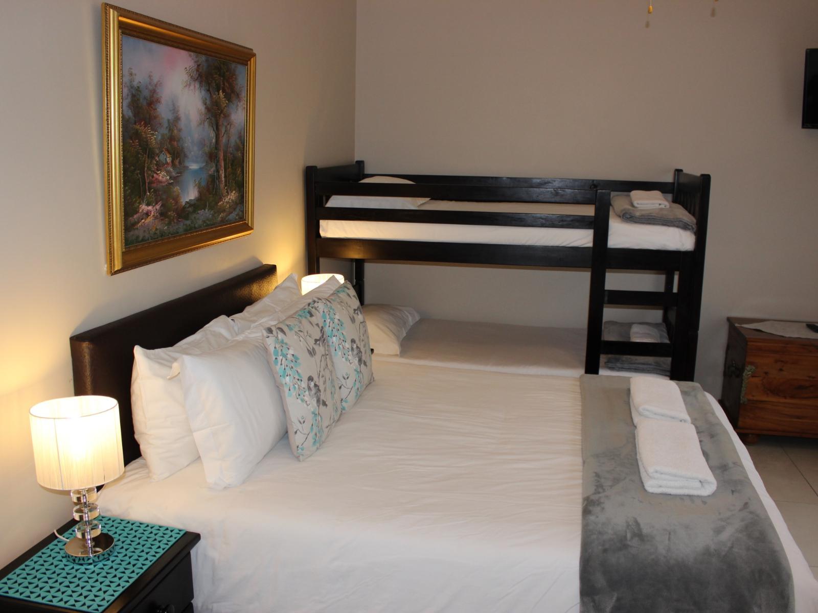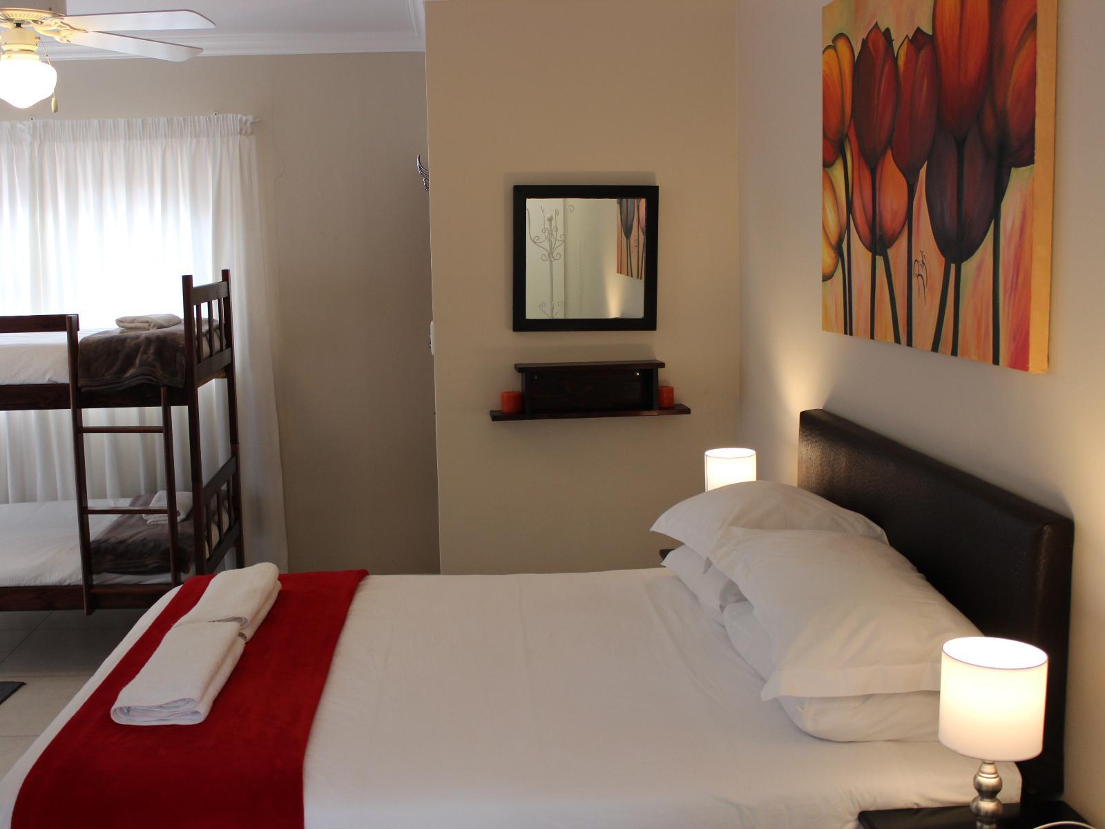 This 24,5 m2 en-suite room with private entrance offers a Queen bed, a bunk bed, TV with streaming service, Bar-fridge, safe, kettle, welcome coffee & tea, and ceiling fan. Access to a communal, fully-equipped, open-plan kitchen, lounge and 2 x barbecues