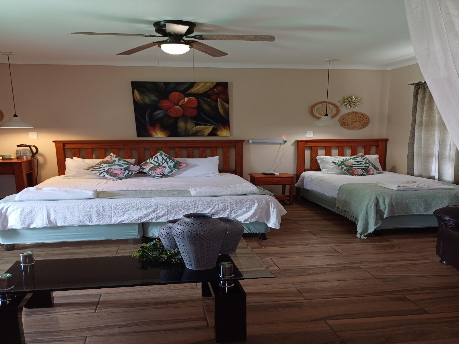 Private entrance, en-suite bathroom (with bath and shower), King bed and a single bed ,-Openview channels,towels and linen supplied, tea/coffee, milk and rusks, mini bar fridge and microwave, basic cutlery and crockery.